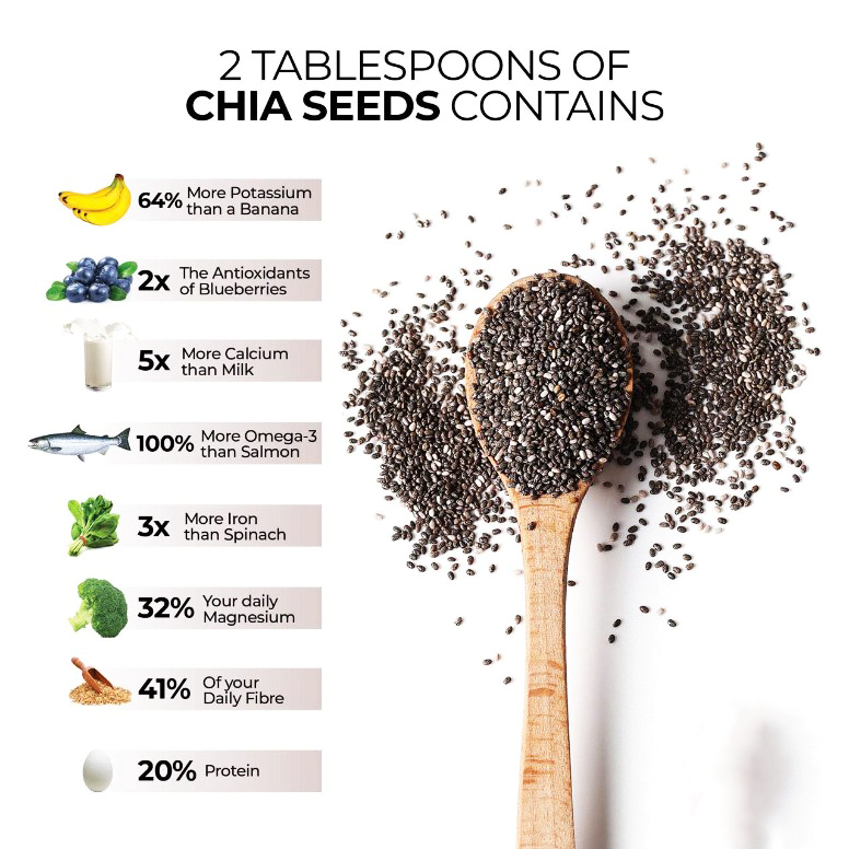 Hạt Chia cũng chứa hàm lượng đáng kể vitamin B3 giúp chuyển hóa năng lượng và chất béo, canxi cho xương khỏe mạnh và kẽm cho chức năng miễn dịch.