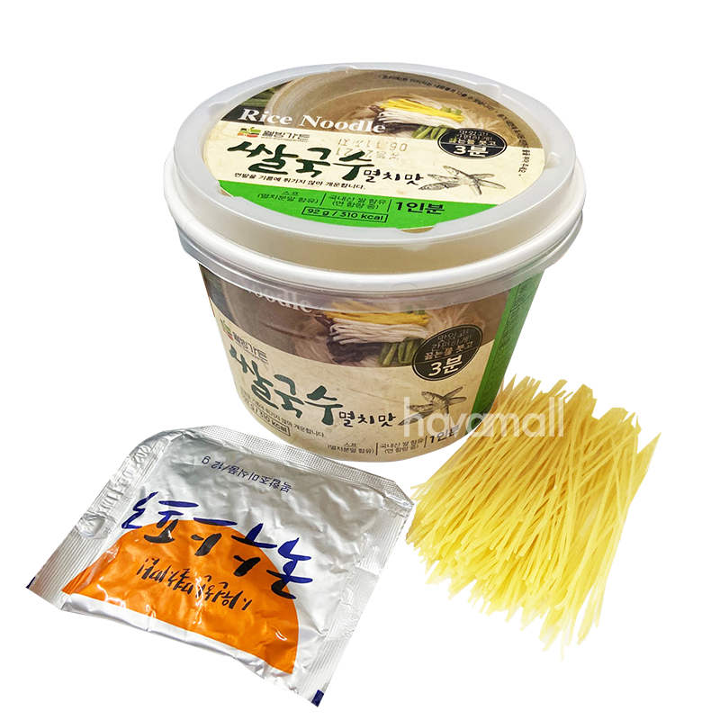 Mì Gạo Cá Cơm, Rong Biển Ăn Liền Hàn Quốc với sợi mì gạo tươi ngon, được sấy khô, chỉ cần nấu trong thời gian ngắn (3-4 phút), được sản xuất trên dây chuyền công nghệ mới của Hàn Quốc mang lại khẩu cảm rất riêng, rất độc đáo. Khi nấu mì cùng với rau, thịt và nước súp thì vị ngọt ngon sẽ thấm sâu vào bên trong của sợi mì gạo.