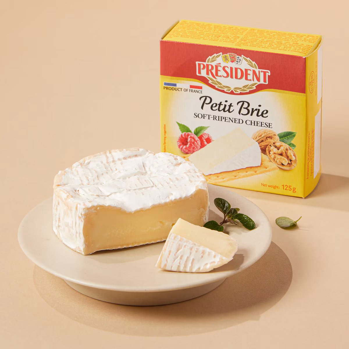 Phô Mai Mềm Nhập Khẩu Pháp Président Petit Brie 125g – Président Petit Brie Soft-Ripened Cheese 125g